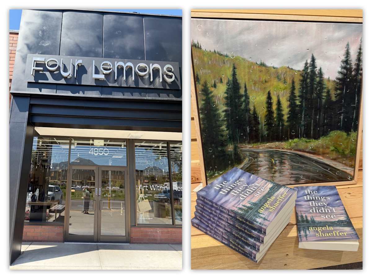 This Tuesday, July 29, I'll be signing and selling books at Four Lemons, the wonderful neighborhood art gallery that showcases the work of Shelly Coleman, the cover artist for The Things They Didn't See. Join us for light refreshments, shopping and Shelly demonstrating her water droplet technique.